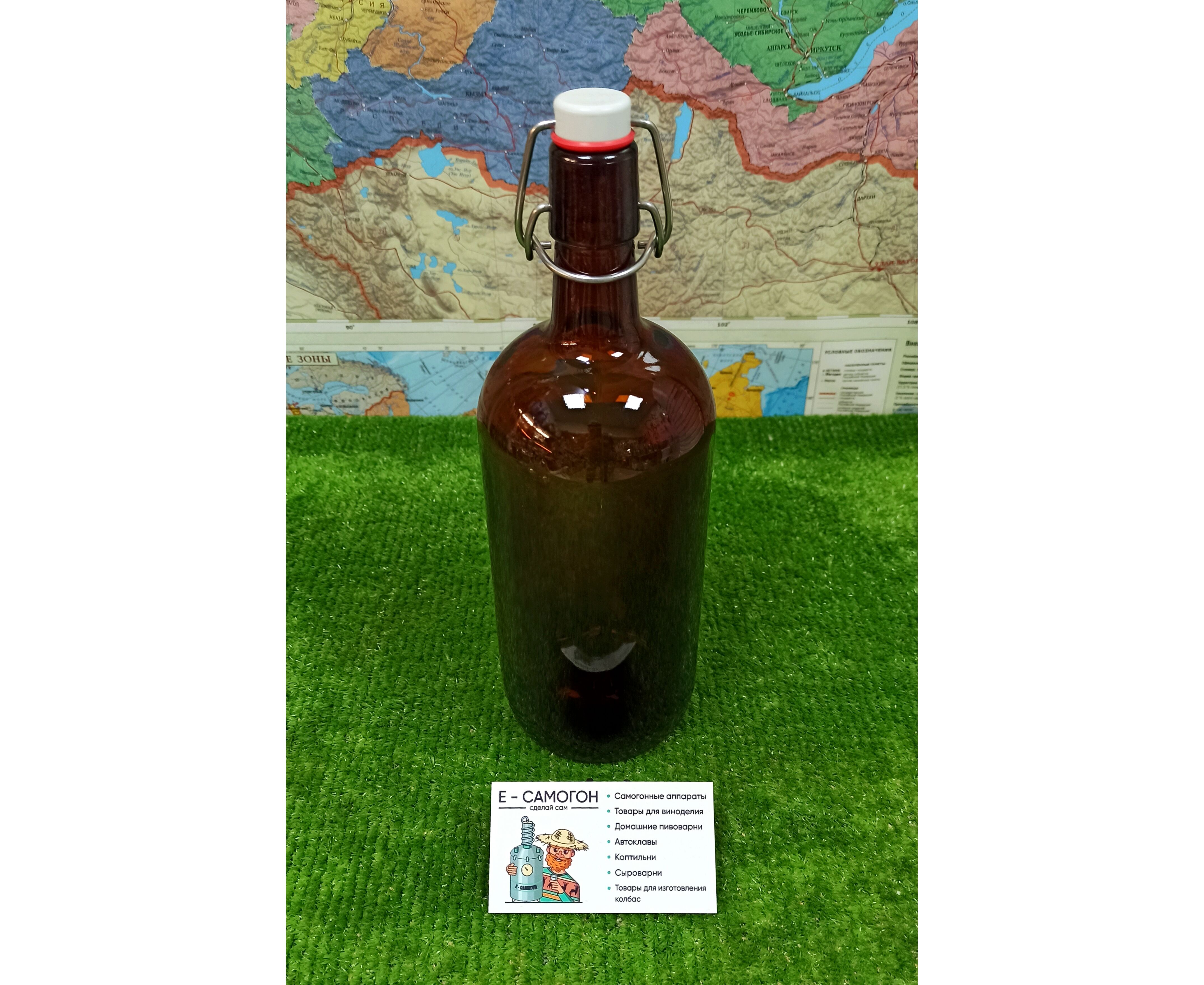 Бутылка «Бугельная» 1л. (Коричневая) с пробкой