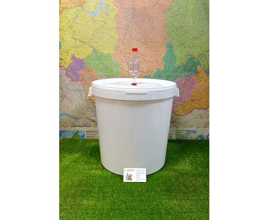 Универсальный бак из пищевого пластика 32 литра, подойдет для брожения вина, браги и пива. На ёмкости установлен S-гидрозатвор, не даст скиснуть продукту.