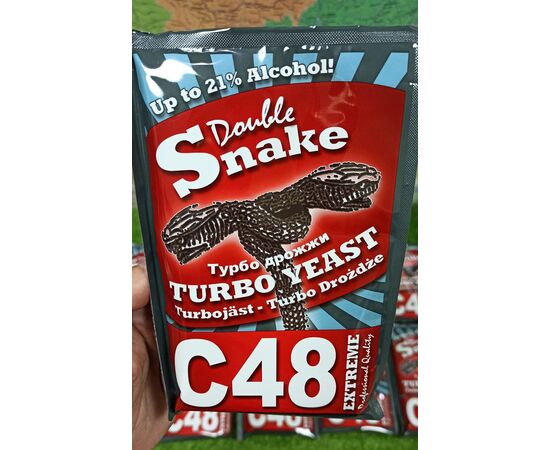 Турбо дрожжи Double Snake C48 являются универсальными и очень популярными дрожжами. Теперь Вам не нужно ставить огромные объемы браги, достаточно добавить в 20 литров воды 9 кг сахара и пачку дрожжей Double Snake C48. Они переработают весь сахар за 7 дней, а крепость браги достигнет рекордные 21%! Это в 2 раза больше чем на обычных спиртовых дрожжах. Ваш напиток будет максимально чистым, без лишних запахов и вредных примесей. Если вы не хотите ждать, то можете добавить 6 кг сахара в 20 литров воды. Тогда время брожения составит всего 48 часов. Благодаря высокой спиртуозности браги вы сократите время перегона, тем самым вы будете экономить на воде и электричестве.