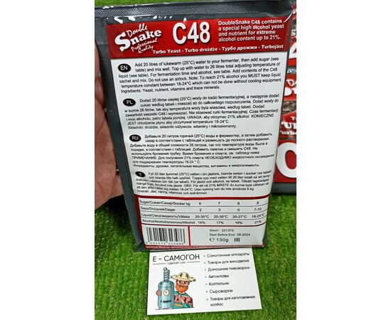 Турбо дрожжи Double Snake C48, 130 гр (Дабл Снейк С48 спиртовые)